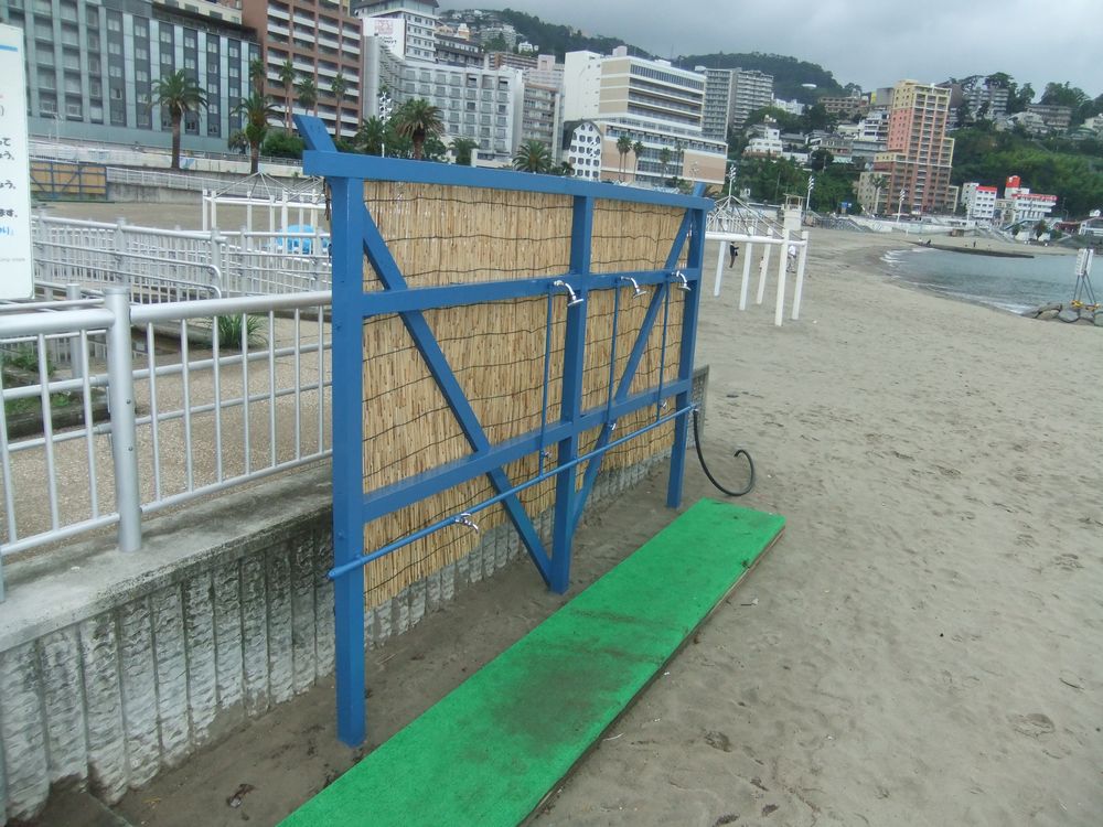 熱海サンビーチは西海岸の「らららサンビーチ」と同じように、白くて細かい砂で造った人工の海水浴場です。浜の長さは400m程で、奥行きは50m位あります。