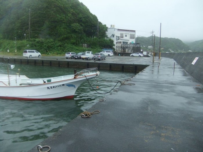 道なりに下ると海岸に突き当たり、右奥に見えるのが外浦港です。