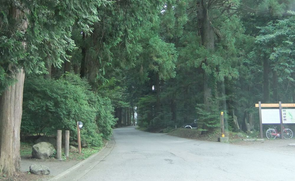 スバルライン入口付近からしばらく行くと、138号線沿いの右側に大きな桧の林が見えてきます。