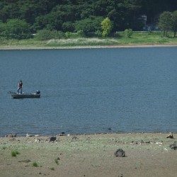 左ではブラックバスを釣っているバスボートが見えました。