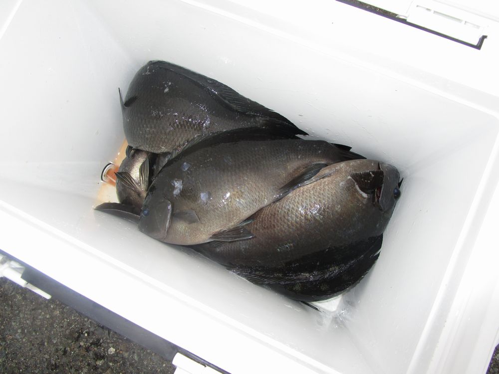 2時半頃になり迎えの船が見えたので急いでクーラーに移そうとすると、元気な奴に一匹逃げられました。(笑)