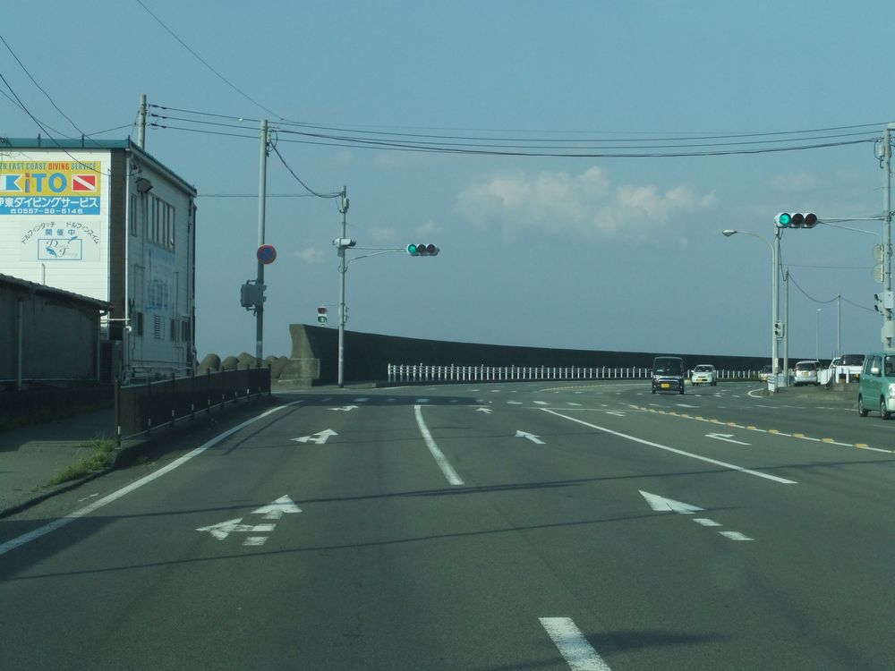 135号線を走り魚市場を過ぎたところに堤防への入口があります。