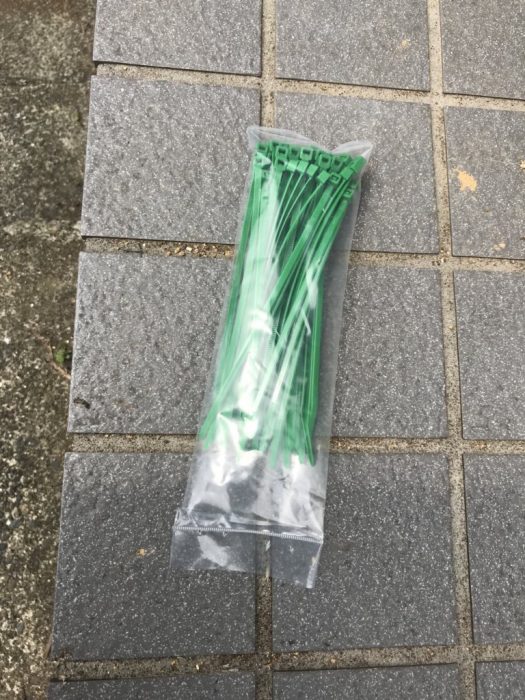 家の防犯用証明の隙間に余分に購入しておいた支え棒を横に通して、結束バンド固定しました。