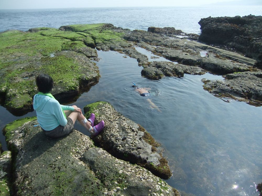 あちこちに満潮時にできた水溜り(タイドプール)ができていて、かわいい小魚やカニ等磯の生物を見ることができます。