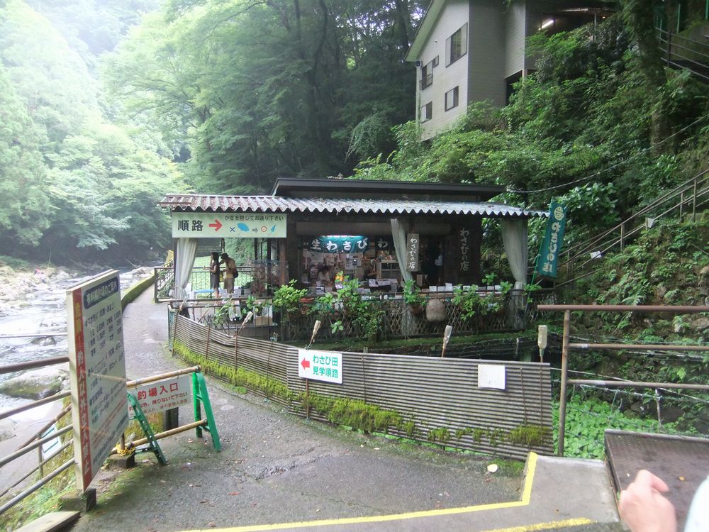 天城の山葵は、延享元年(1744年)に天城湯ヶ島(現伊豆市)で山守を務めていた板垣勘四郎という人が、静岡の山葵発祥の地「静岡市葵区有東木(うとうぎ)」に、三島代官の命によりシイタケ栽培の技術指導で訪れたとき、ここの山葵栽培を知り、天城でも行いたいと懇願し苗を分けてもらったことから始まっているそうです。