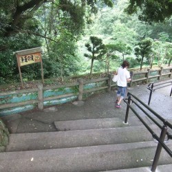 叶姉妹の友達みたいなおねえさんがポーズを作って入口から出てきましたが、こんな格好でも滝まで下りていけますから道はかなり整備されていますよ。