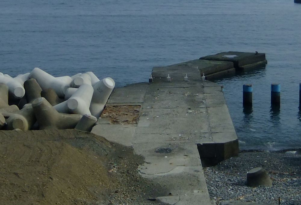 鉄製の階段を越えて行くと目の前にかなり広い突堤が出ています。