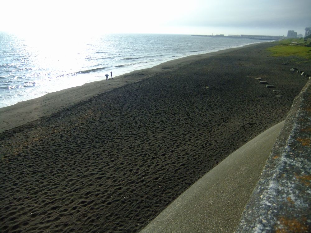 海岸沿いの防波堤を上ると目の前が海水浴場です。