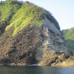 港から少し南下すると、雲見浅間神社を祀ってある烏帽子岩。