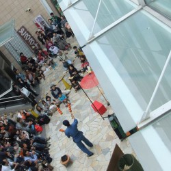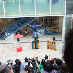 商業施設の中庭でパフォーマンスを行っっていたのは「彦一団子」というパフォーマー。