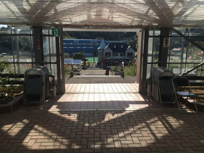温室への入り口は、トイレがある東口と正面口がありますが、東口からのほうがおすすめ。