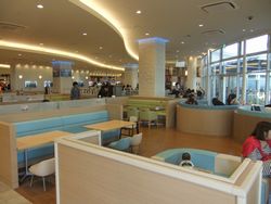 建物内は上り線とは違いワンフロアで、フードコートとショッピングフロア、シャワーやリフレッシュブースがあるドライバーズスポット、そして外にはオーシャンビューのテラスが設置されています。ミニストップ(コンビ二)も・・・